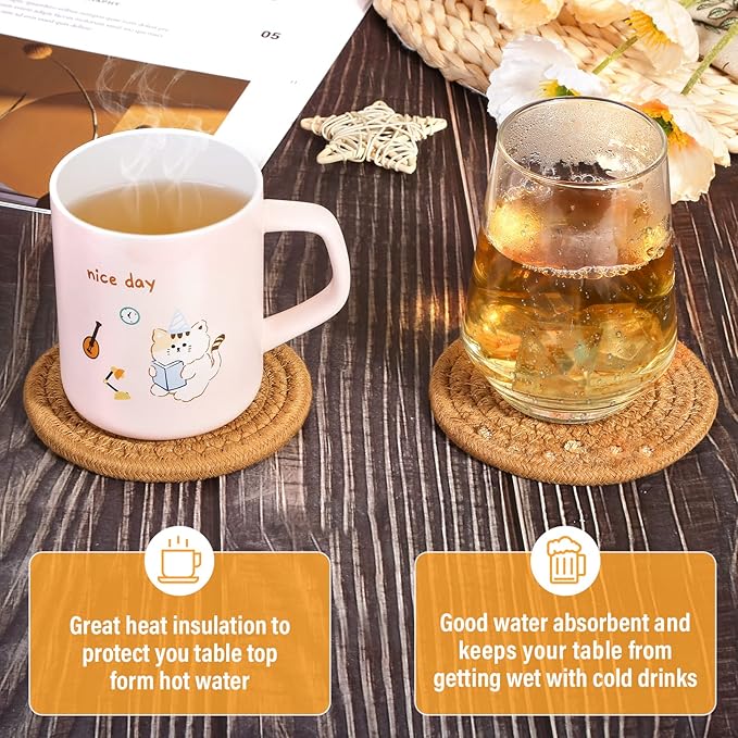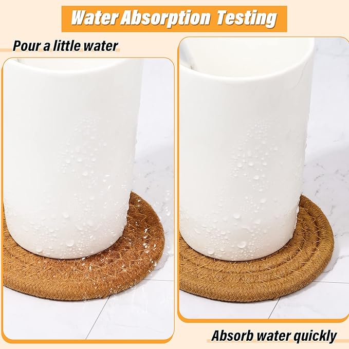 - No More Fear of Spills: Mckanti drink coasters are handcrafted from 100% cotton and linen. They are more absorbent than other silicone or ceramic coasters. This coaster instantly absorbs spilled moisture and then miraculously evaporates , keep it dry and clean at all times. All you need to do is place your drink on the Mckanti drink coaster and enjoy your drink time.