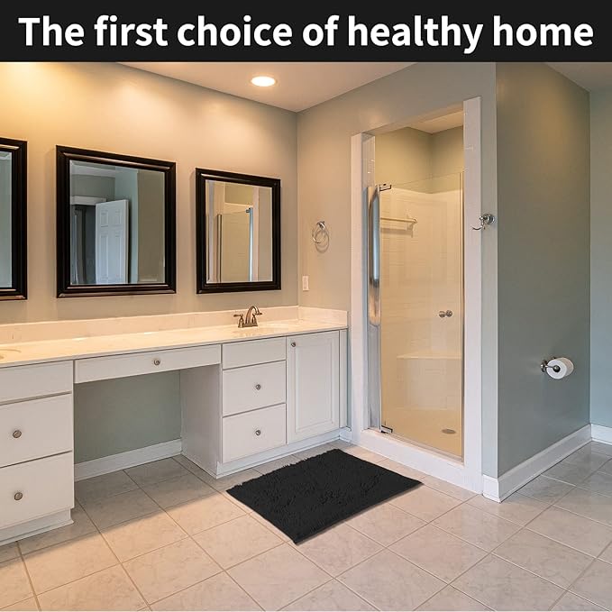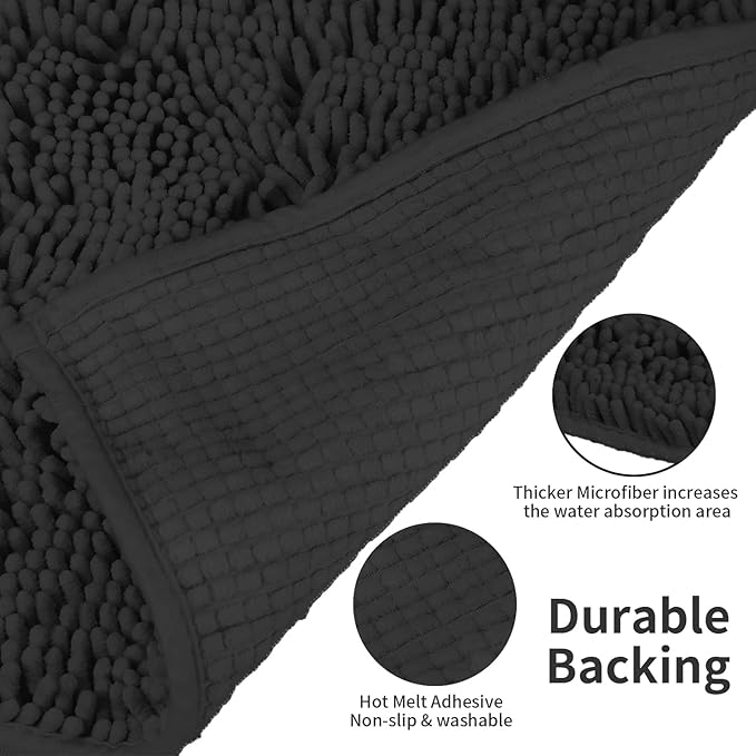 ZiYiJuan Bathroom Rugs, Super Absorbent Luxury Shaggy Chenille Bath Mats, Durable Black 17x24_20x32