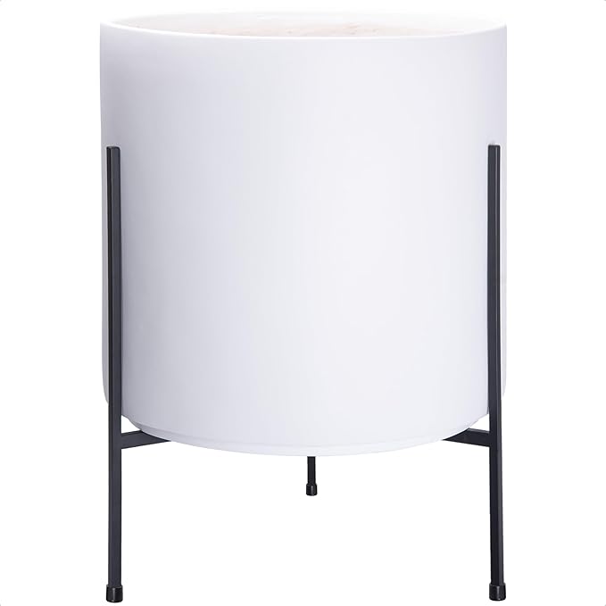D'vine Dev Modern White Plants Pot Cylinder Planter with Heavy Duty Stand, XX-Large 16 Inch Pot, 22.8 Inch with Stand Height, 96-T-A-5