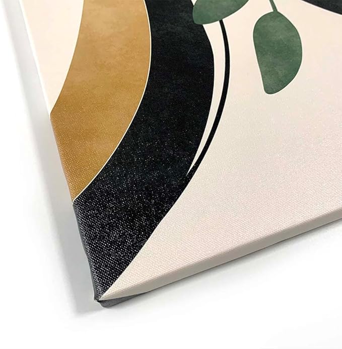 - [Durable & Waterproof Canvas Wall Art]: This minimalist neutral geometric black, Beige, green botanical canvas wall art painting are made of high-quality canvas material to ensure durability, and we print with high-quality inks, never fade over time. Also wrapped in a wood frame that will last, tightly stretched to ensure the canvas won't crease and bend.