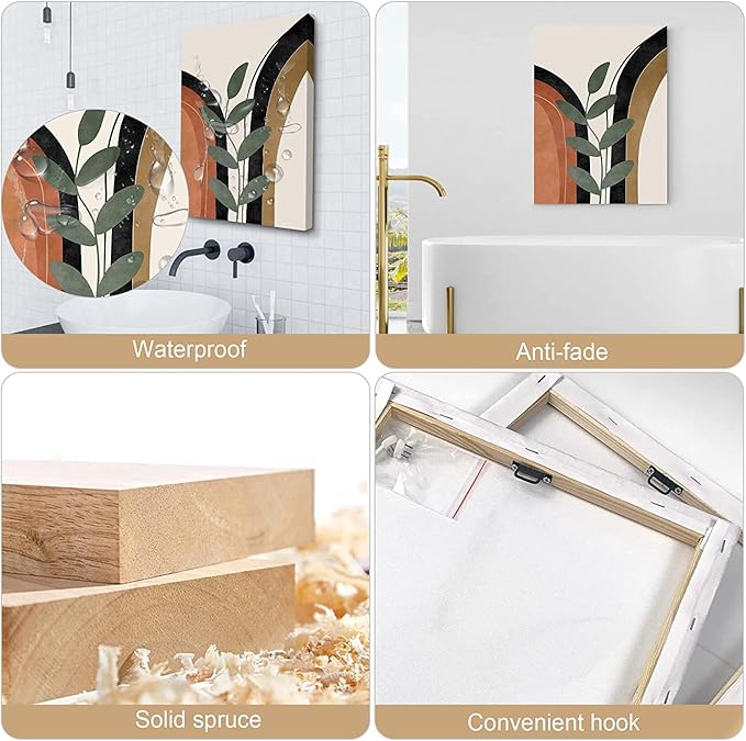 - [Durable & Waterproof Canvas Wall Art]: This minimalist neutral geometric black, Beige, green botanical canvas wall art painting are made of high-quality canvas material to ensure durability, and we print with high-quality inks, never fade over time. Also wrapped in a wood frame that will last, tightly stretched to ensure the canvas won't crease and bend.