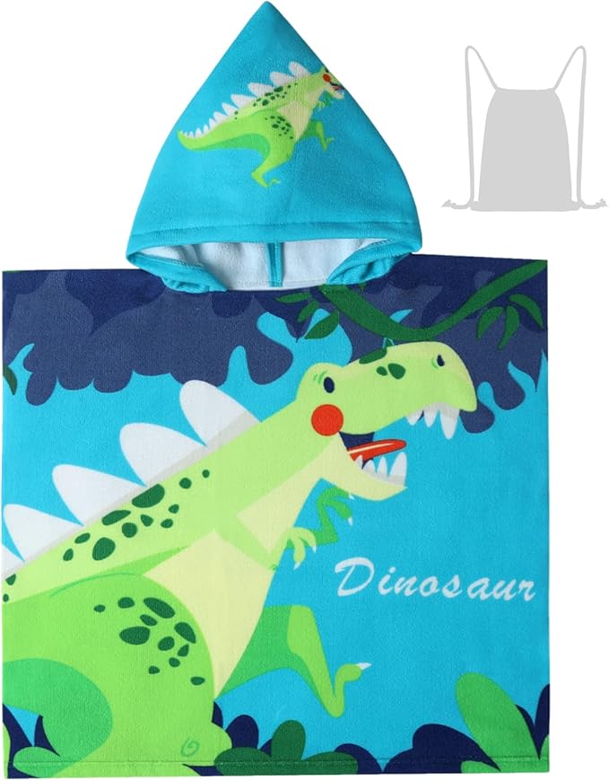 Kids Dinosaur Beach Towel with Hooded for Boys Girls 1-6 Years | Baby Toddler Bath Towel for Pool Swiming Hood | Children Microfiber Towel