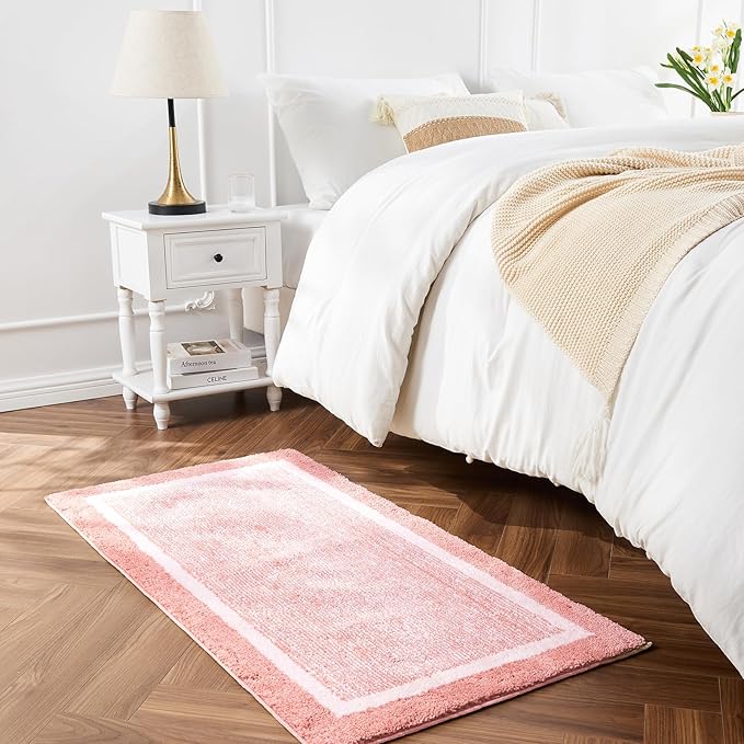 - 【Machine washable】This bathroom floor mats are machine washable with cold water and mild detergent (no chlorine or bleach) hang air dry. The Color will not fade and stay vibrant for years after washing it.