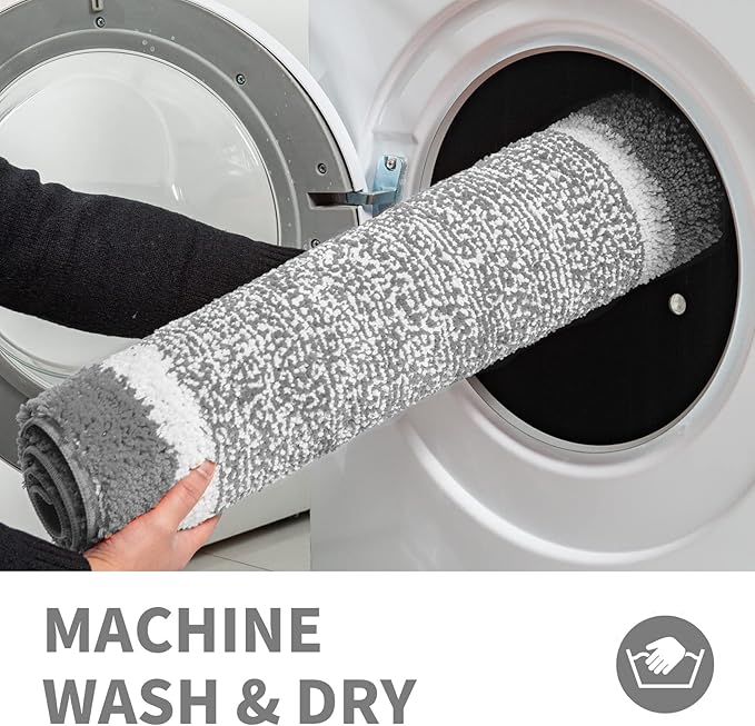 - 【Machine washable】This bathroom floor mats are machine washable with cold water and mild detergent (no chlorine or bleach) hang air dry. The Color will not fade and stay vibrant for years after washing it.
