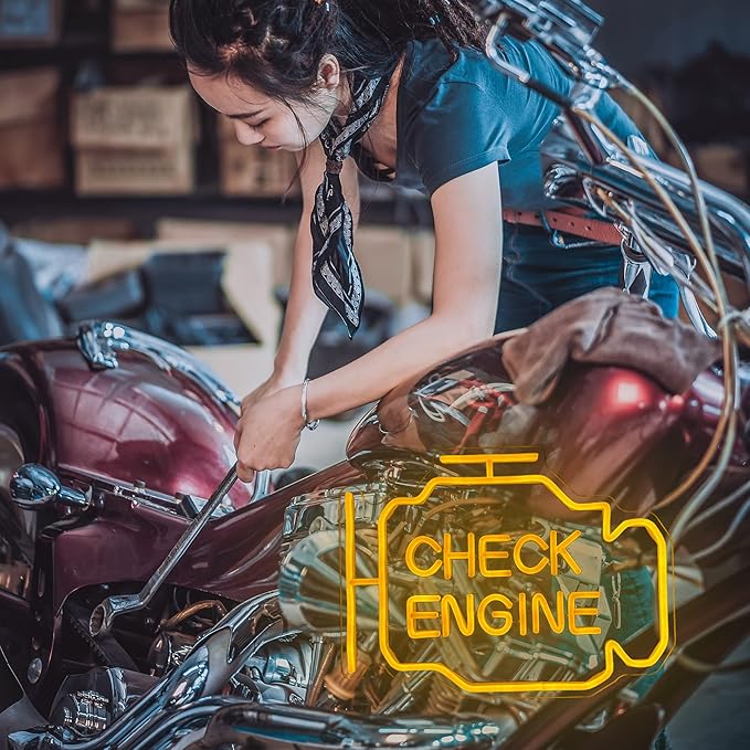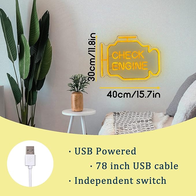 - Special Design:The check engine neon sign easily make your garage the most epic entertainment center with this car accessories shaped neon sign that instantly transforms your space and make you happy. It makes the perfect addition to your game room decor and brings a cool touch of color that will make your buddies envious