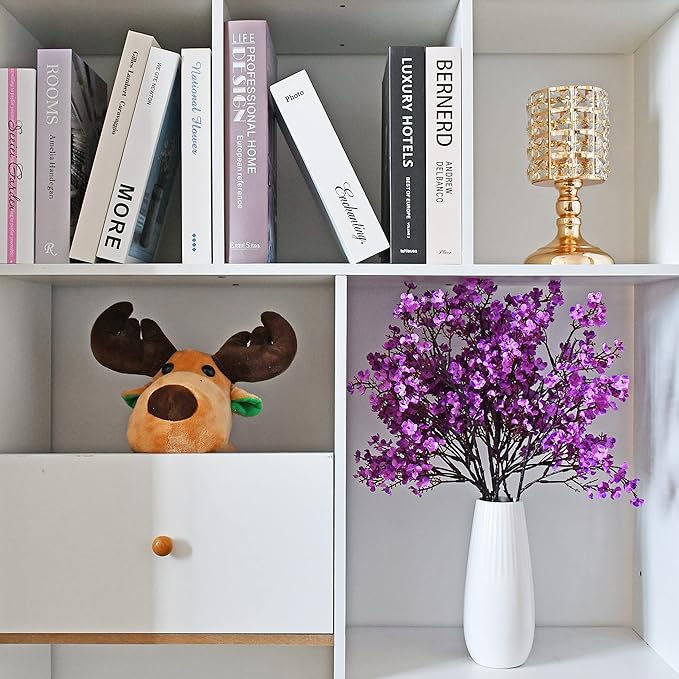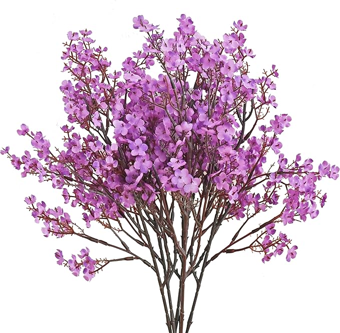 Mandy's Purple Artificial Baby’s Breath Flowers 6 Bundles Silk Gypsophila with Bendable Stems for Fall Centerpiece Wedding Decor and Table Arrangements