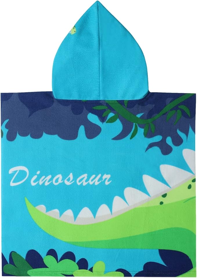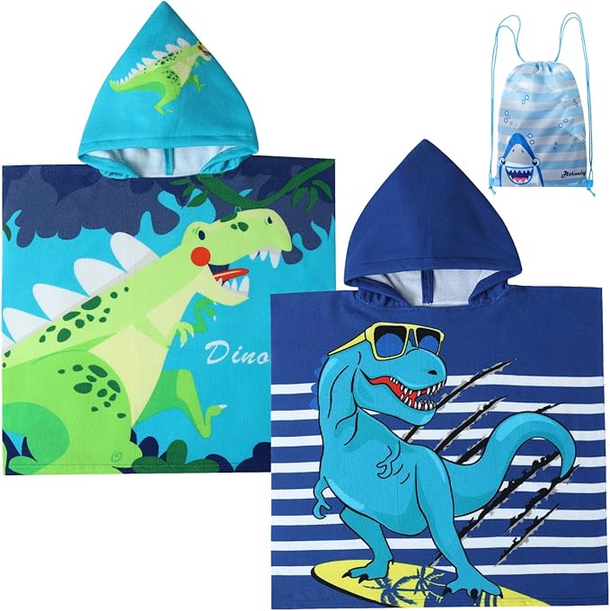 Kids Dino Theme Wearable Beach Towels Bath Beach Pool Travel Camping Towel Poncho for 1-6 Years Old Toddlers and Kids Dinosaur 2Pcs