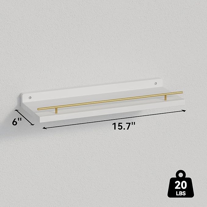 - 【Attractive Metal Guardrail】- Besides its chic look, the gold metal guardrail effectively prevents items on each shelf from dropping, offering a secure storage space for bathroom accessories such as toilet paper, bathroom canisters, or personal care products including shampoo, lotion container, candle and essential oil. When used as picture ledge, its guardrail provides excellent support for art or picture frame that is without stand. It's time to give your photographs a new home!