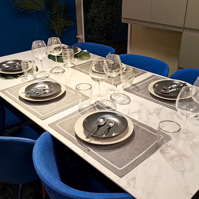 Placemats Set of 4 for Dining Table, Cloth Placemats with Embroidery, Table Mats for Dining Table 12"x18" (Gray, 4 pcs)