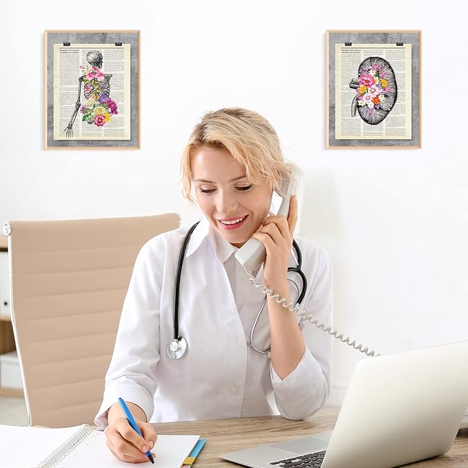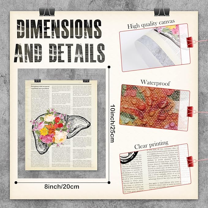 Jetec 12 Pieces Medical Dictionary Art Set 8 x 10 Inch Anatomy Decor Vintage Anatomical Posters Vintage Floral Human Wall Decor for Doctor Office Clinic Gift for Nurses Med
