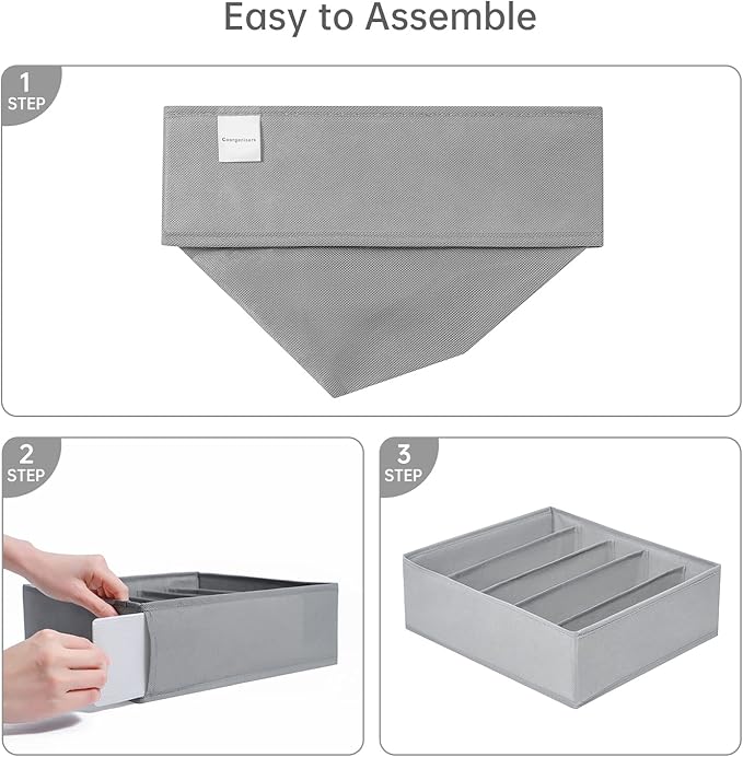 - 【5 Grids Divider】Each wardrobe organizer is divided into 5 separate grids, one grid, and one item, which can keep your clothes and closet neat and tidy and easy to pick and place in a short time. Plus, the foldable and stackable design can greatly improve the utilization of wardrobe space.