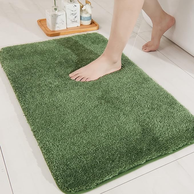 COSY HOMEER Bath Rugs for Bathroom Extra Thick- Anti-Slip Bath Mats Soft Plush Yarn Shaggy 100% Strong Mirco Polyeste Mat Living Room Bedroom Mat Floor Water Absorbent(Green,24x36 - Inches)