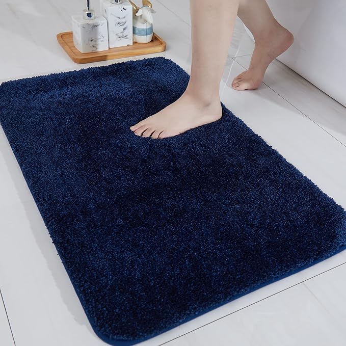 COSY HOMEER Bath Rugs for Bathroom Extra Thick- Anti-Slip Bath Mats Soft Plush Yarn Shaggy 100% Strong Mirco Polyeste Mat Living Room Bedroom Mat Floor Water Absorbent(Navy,24x36 - Inches)