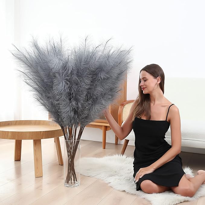 - 【Quantity and Size】:You will get 8 pcs artificial grey tall pampas grass with a total length of 45 inches and a feather length of 28 inches. You can fill the entire large floor vase or meet the arrangement of two vases at the same time. Bring beauty into your space with these luxurious high quality pampas grass stems.