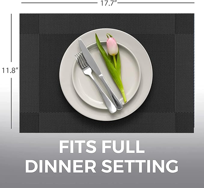More Décor Dining Table Placemats, Washable Heat-Resistant PVC Vinyl Table Mats for Dining Room and Kitchen, Anti-Slip - Set of 6 -Black