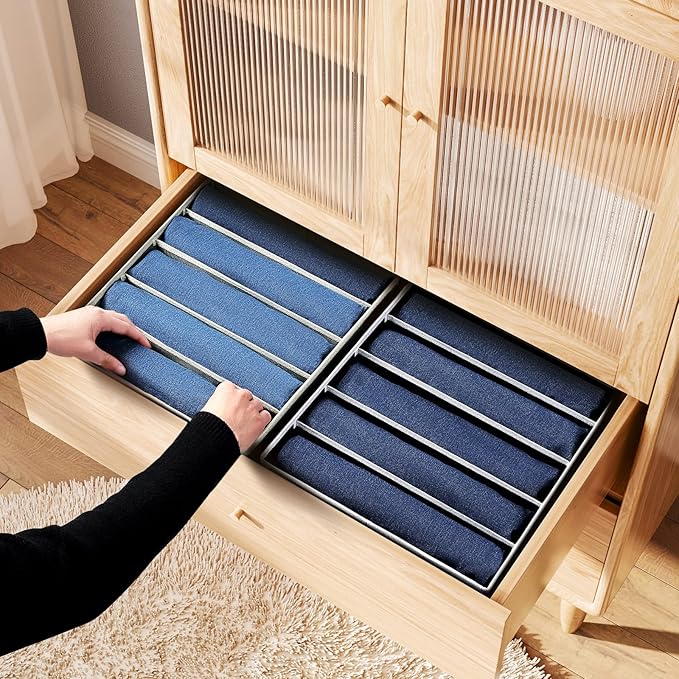 - 【5 Grids】With 5 compartments, these clothes organizer for folded clothes can hold different clothes with each grid. And the jeans organizer can better organize and keep your clothing tidy. And you could see and find your clothes at a glance from the closet drawer organizer.