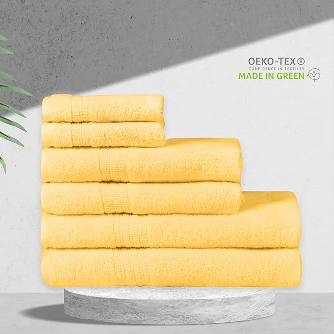 HOMELOVER 6 Piece Towel Set - 100% Organic Cotton, 2 Bath Towels, 2 Hand Towels, 2 Washcloths - 500 GSM, Hotel & Spa Quality, Soft, Quick Dry, Highly Absorbent Bathroom Essentials (Lemon Yellow)