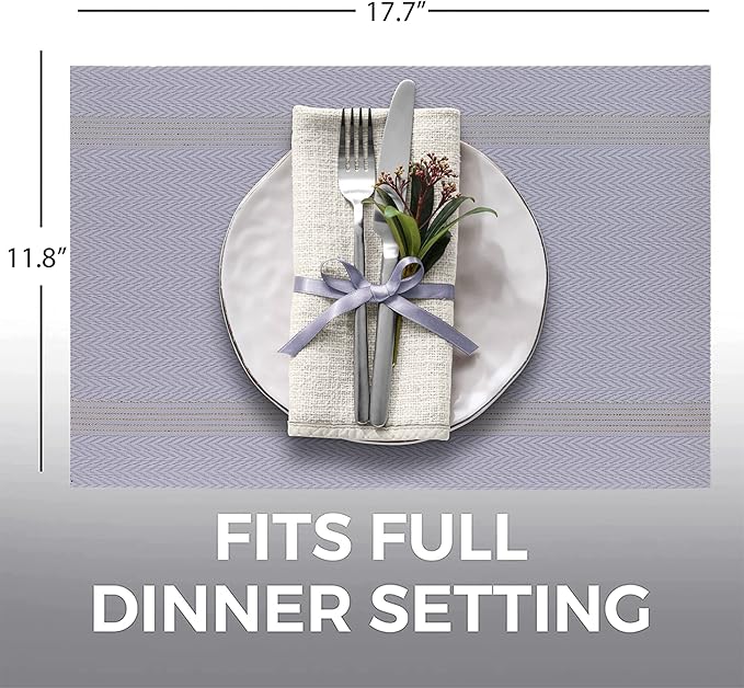 More Décor Dining Table Placemats, Washable Heat-Resistant PVC Vinyl Table Mats for Dining Room and Kitchen, Anti-Slip - Set of 4 - Purple