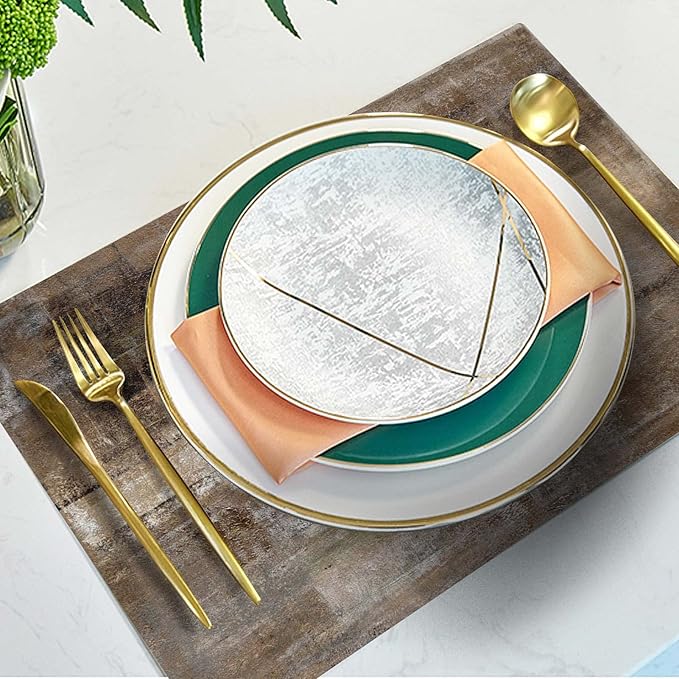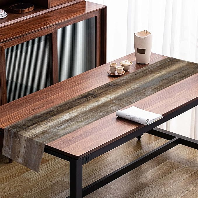 Mcalk Dark Brown Table Runner and Placemats Set of 6 Pieces, Brown Placemat, Cloth Place Mats Indoor for Kitchen, Washable Abstract Placemats Linen Material for Dining Table