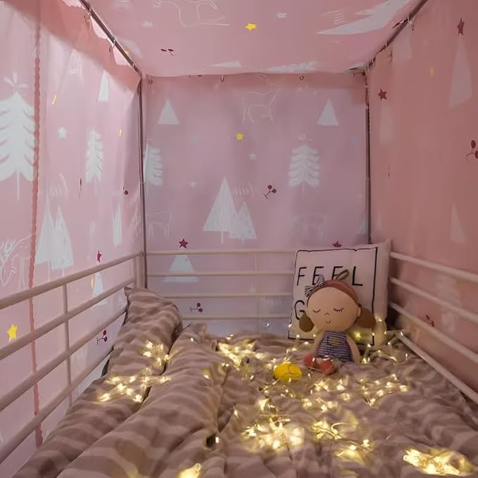 - STYLISH PATTERN DESIGN: Black style is suitable for boys, looks simple, and is suitable for men and teenagers who like simple life. Pink style is suitable for girls, lovely strawberry pattern, create a beautiful princess bed or a more romantic appearance for your child, so that it doesn't look so monotonous, and it also separates the personal space and protects personal privacy.