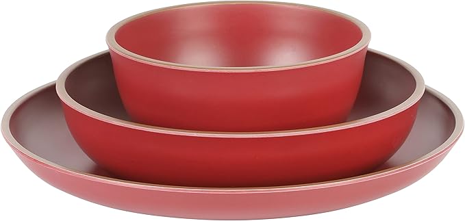 Gibson Home Rockabye 12 Piece Double Bowl Melamine Dinnerware Set - Matte Red