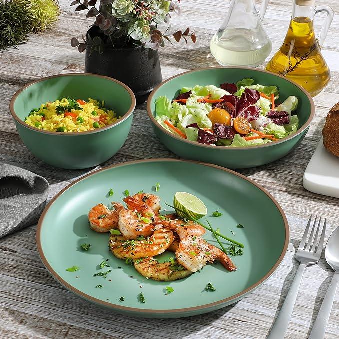 Gibson Home Rockabye 12 Piece Double Bowl Melamine Plastic Dinnerware Set - Matte Green