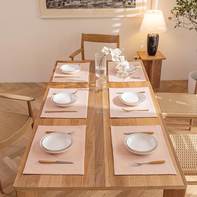 Demetex Pink Placemats Set of 6 Heat Resistant Linen Place Mats Washable Cloth Plate Mats for Dining Party Banquet Table Decorations, 13 x 19 inch, Pink