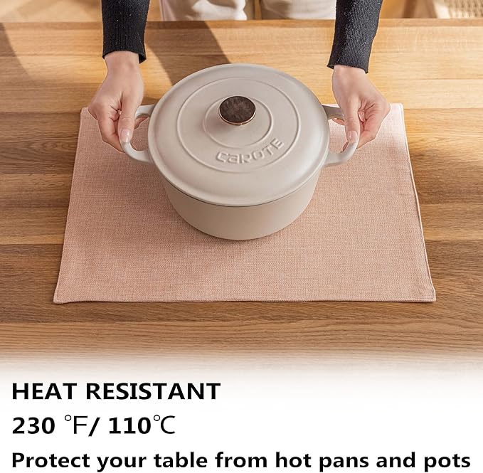 - Premium Fabrics: Our place mats are made of faux linen fabric, eco-friendly and durable placemats with exquisite workmanship which can be used for a long time. Not waterproof and liquid can go through placemats
