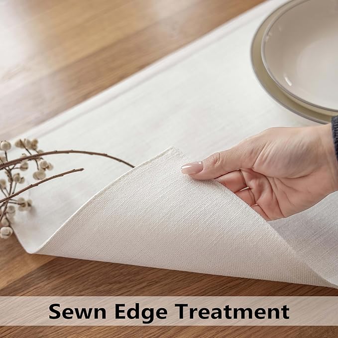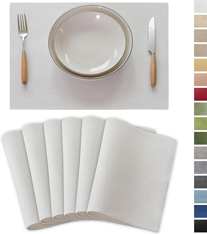 Demetex White Placemats Set of 6 Heat Resistant Linen Place Mats Washable Dining Table Plate Mat for Holiday Wedding Kitchen Decor, Pure White