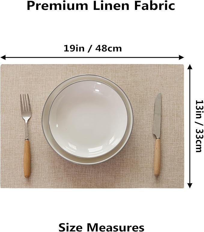Demetex Placemats Set of 6 Heat Resistant Dining Table Mats Linen Cloth Placemats for Kitchen Indoor Outdoor Place Mats, Light Linen