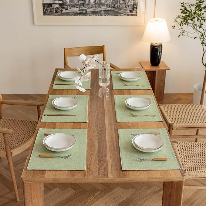 Demetex Green Placemats Set of 6 Washable Place Mats Heat Resistant Table Mats Sage Placemat for Kitchen Dining Plate Tables, Green