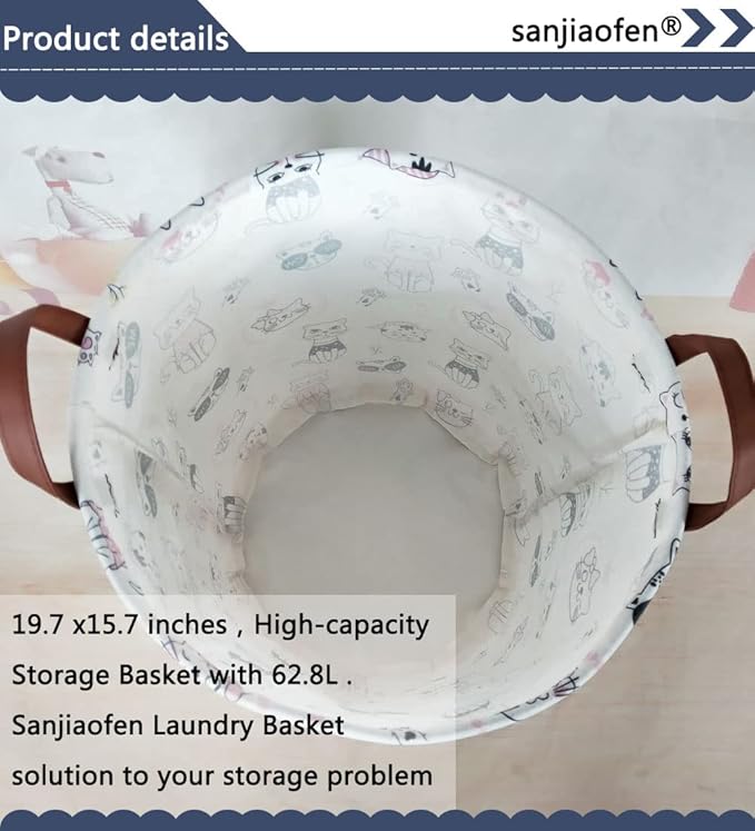 - 【FEATURE】:1.The laundry basket has a large capacity and can store the whole family's clothes. 2.Laundry basket with two handles, easy to move. 3.collapsible design,you can fold it up when you don't need it,easy to store and save space. 4.The pattern of clothes hamper is fashionable and stylish, It will be great gift for family and a good helper for housewives.