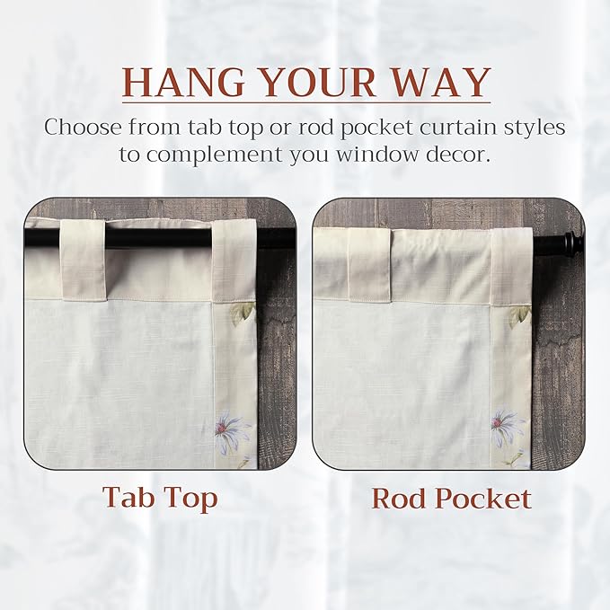 - High-quality cotton: Made from 100% breathable cotton, this curtain with rod and loop pockets offers a soft, elegant touch to any space. Ideal for living room, bedroom, dining, or home office, it brings charm and character without overwhelming your décor