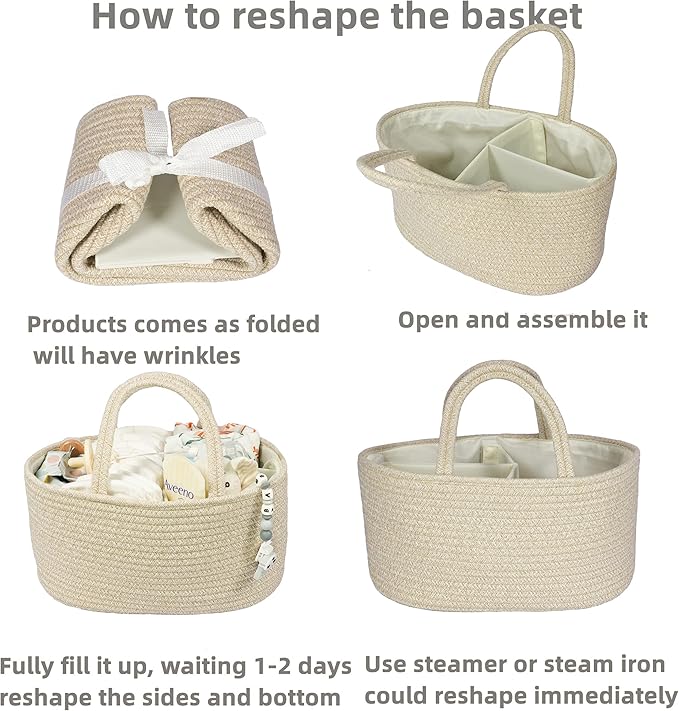 - Great Baby Gifts: This unisex diaper basket organizer is a perfect Newborn gifts as it Looks perfect on dresser top, next to diaper pail, bedside, crib and etc. This diaper basket caddy is not only beautiful but also practical. Could fill it with diapers, wipes or anything else new baby stuff as gift basket. Baby caddy is one of newborn must have items.