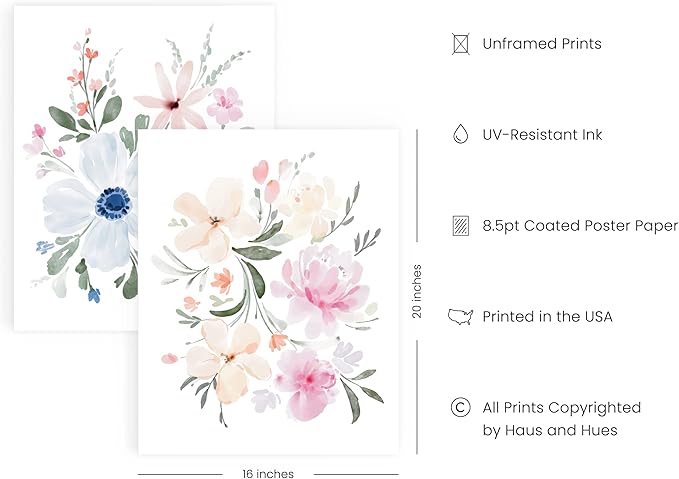 - MADE IN THE USA: To achieve the quality we’re known for, we use a gicle printing technique on 8.5pt coated poster paper. The recycled paper used for our flower print wall decor is sustainably-sourced in the US, and our inks are water-based and toxic-free. The flower art paintings are shipped in a durable mailer to protect the artwork while in transit so your floral watercolor prints arrive in perfect condition.