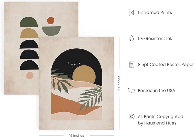 - COMPLEMENT YOUR WALLS WITH BOHO POSTERS: Bring a part of nature into your space with this HAUS and HUES set of mid century wall art. With its clean lines, abstract design, and simplicity, this modern, earthy, and neutral wall art will effortlessly bring a homey and relaxing vibe into any home or office setting. Elevating your space with our mid century modern art wall decor has never been easier and more