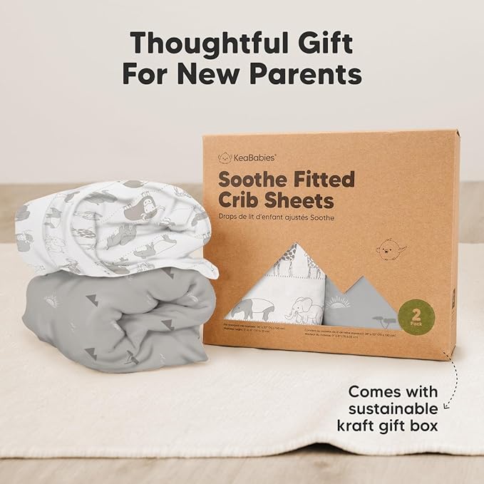 - 2-Pack Fitted Crib Sheets - Each KeaBabies Soothe Baby Crib Sheets set comes with two organic crib sheets for boys and girls that can perfectly fit the standard nursery crib mattresses sized at 52” x 28” and height of 3” to 8”.