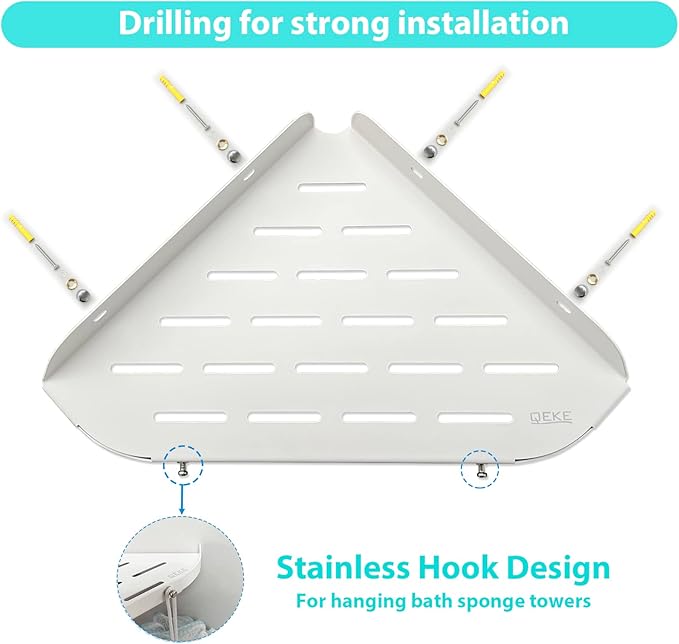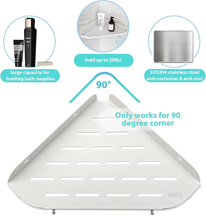 - 【High-Quality SUS304 Stainless Steel】Qeke corner shower caddy is made of SUS304 stainless steel, which is anti-corrosion and anti-rust, durable. Suitable for use in wet shower environment.