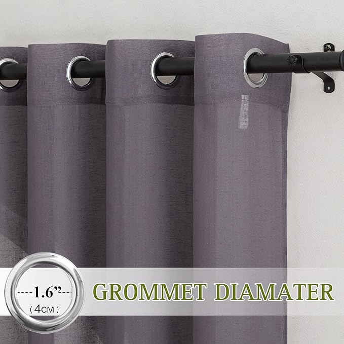 - READY MADE: Package includes 2 flax sheer linen curtain panels, each measures 52"W (104"W for pair), with 8 (1.6" inner diameter) silver grommets to suit with standard or decorative curtain rod.