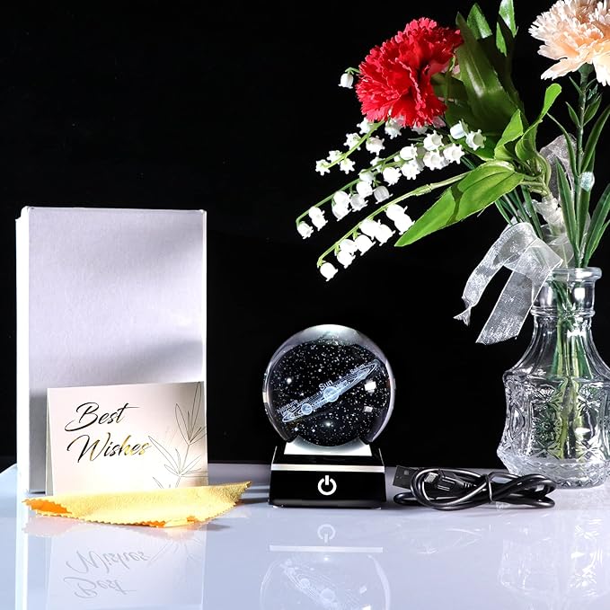 - 【PACKAGE INCLUDES】1 Solar System crystal ball (80mm / 3.15 inches), 1 USB cable, 1 gift box, 1 LED lamp base(Please note: Batteries not included), 1 greeting card and 1 cleaning cloth. Our all crystal balls are packaged in an elegant gift box, ready to be a gift for someone you love as a suprise