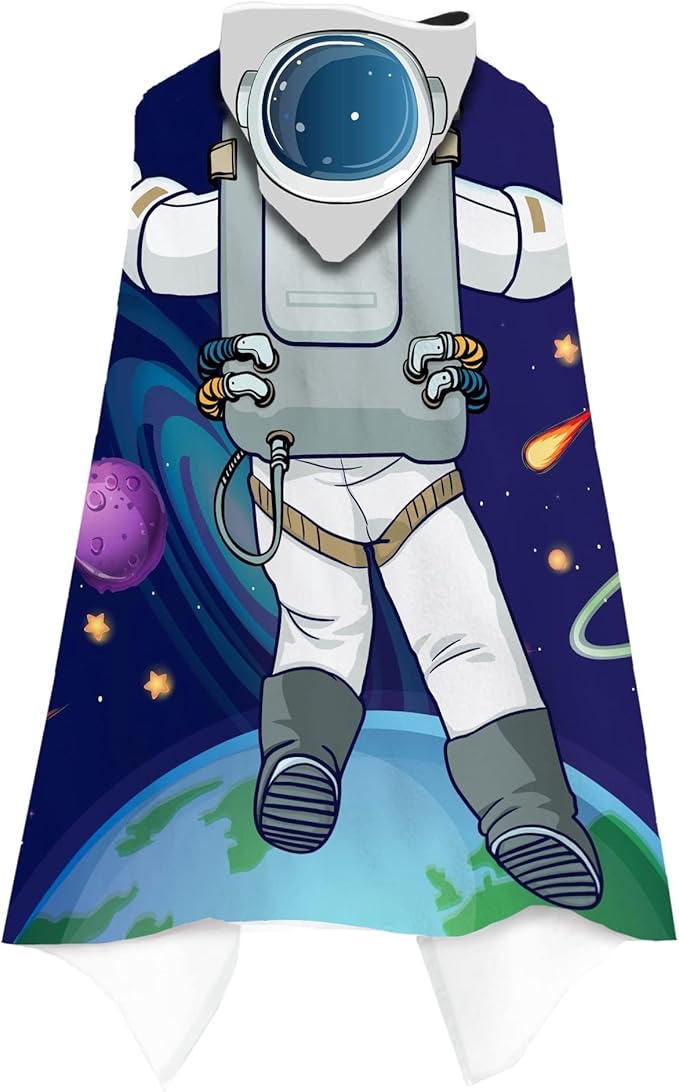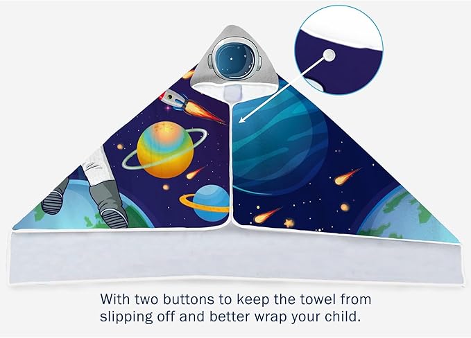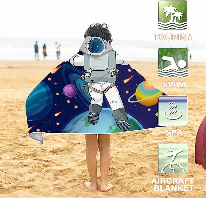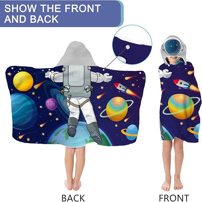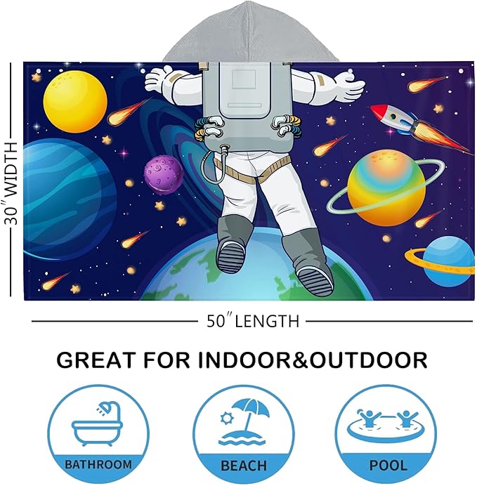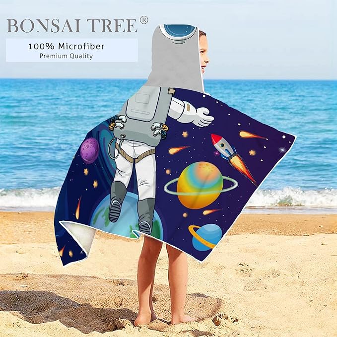 Kids Beach Towel, Kids Bath Towels with Hood, Outer Space Theme Hooded Towel for Boys Girls 30"x50", Cool Kids Towel Gifts Cartoon Microfiber Soft Bath Towel Poncho Bathrobe Wrap Robe for Swin Pool
