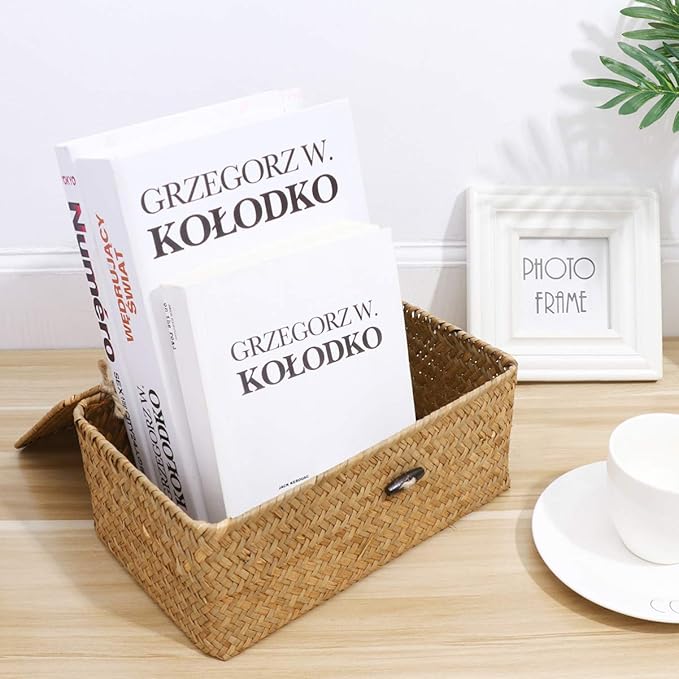 - KEEP YOU ROOM TIDY: Lets use this basket with lid to keep your tidy. You can use this seagrass basket to stow magazines, books, files, clothes, towels, toys, fruits, snacks, or other household items. keeping your bedroom, bathroom, living room, entryway, shelves, closets organized and neat. The natural coloring will an earthy feel to any room in your home.