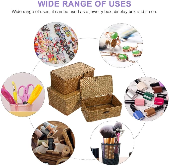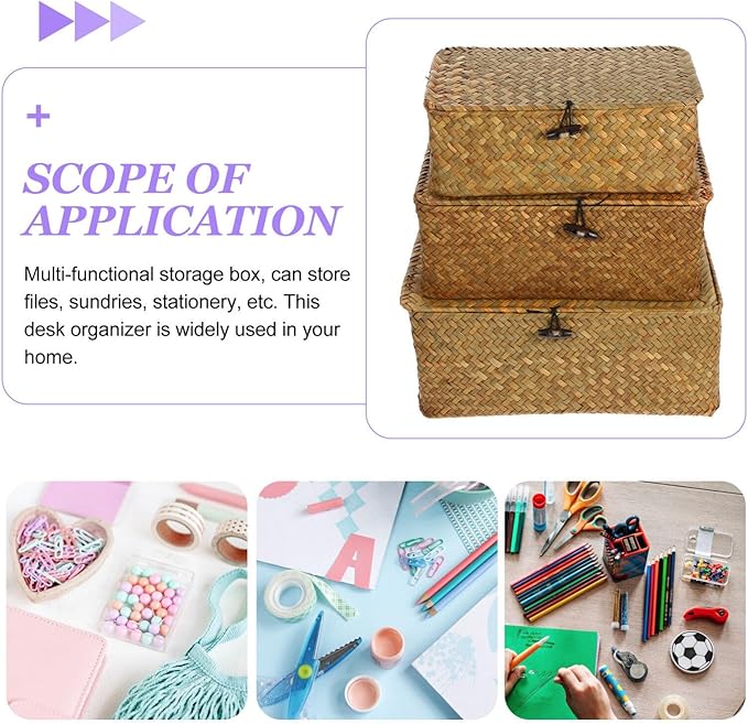 IMIKEYA 3pcs Seaweed Baskets with Lids: Woven Baskets Seagrass Storage Woven Basket Straw Desktop Rattan Storage Basket Hand-Woven Storage Basket for Shelf Desktop Home Decor