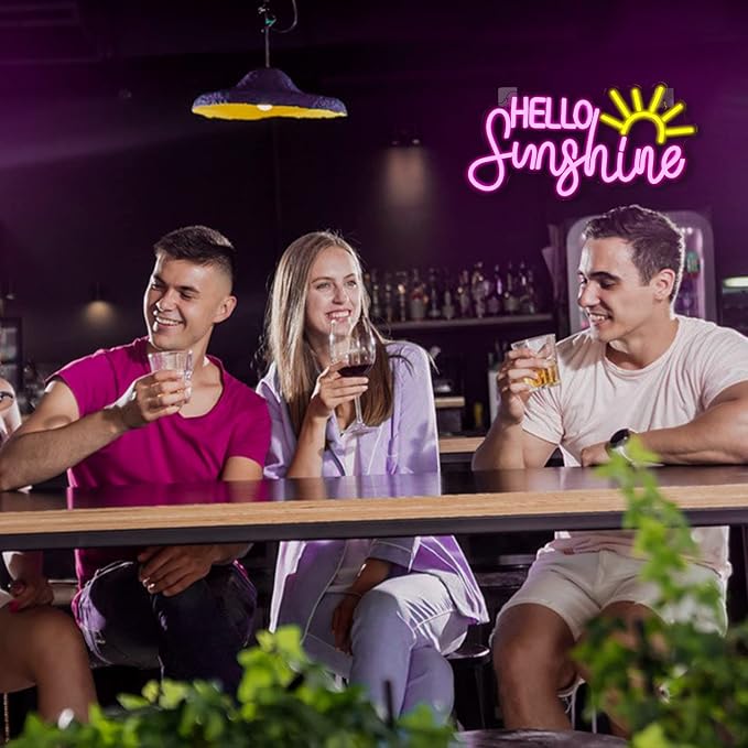 - Hello Sunshine Neon Sign: This Pink Led Neon Sign is Bright But Not Glarbing. Brighten Your Summer With This Unforgettable Neon Sign Can Make Your Home Warm and Personalized.