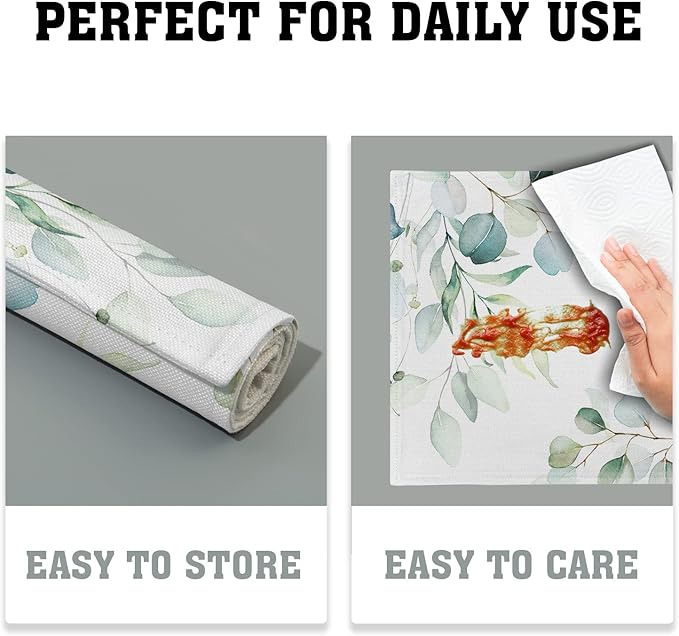 Sage Green Placemats Set of 4 Washable Non-Slip Heat Resistant 12×18 Inch Spring Watercolor Eucalyptus Leaves Thick Place Mats Decorative Linen Fabric Table Mat for Dining Table Kitchen Home Decor