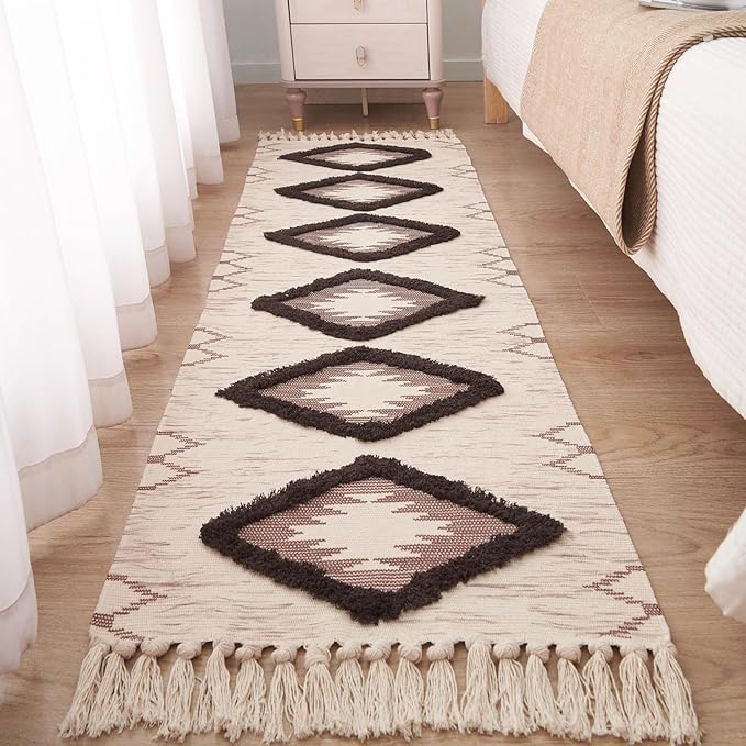 - Well Made Runner Rug: High-quality modern runner rug is made of cotton and line material with great texture, which is natural, solid and long lasting. Come with non slip rug pad to keep the runner rug from moving.