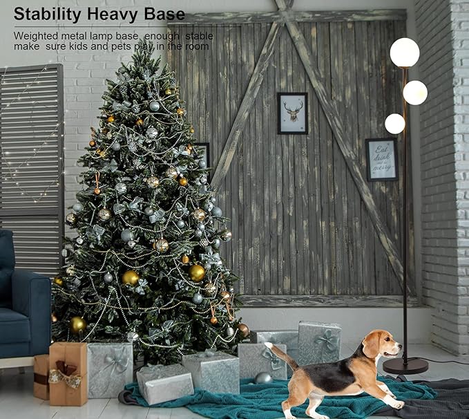 - Friendly Quick Assembly: All joint of black globe floor lamp has a screw design, include the pole, lamp base, and the 3 frosted glass globes have a screw point, can be easy screw together without any tools, this way can save lots of time and money, no need electrician to install it.
