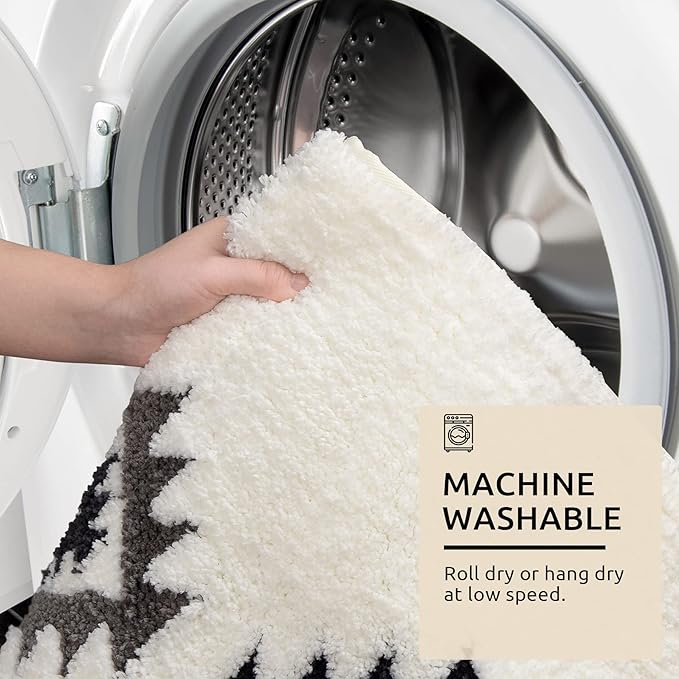 DEXDE Bathroom Runner Rugs 24x60 Boho Long Bath Mat for Bathroom Bedroom Hallway Kitchen Luxury Soft Absorbent Large Bath Rugs Bohemian Carpet Geometric Farmhouse Decor, Black White