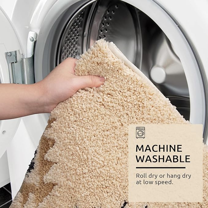 DEXDE Boho Bathroom Runner Rugs 24x60 Long Bath Mat for Bathroom Bedroom Hallway Kitchen Shower Luxury Soft Absorbent Large Bath Rugs Carpet Geometric Farmhouse Home Decor, Beige