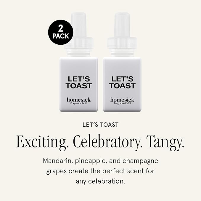 Pura & Homesick Home Scent Refill - Smart Clean Air Diffuser Fragrance - Up to 120-Hours of Luxury Fragrance per Refill - Household Essential - 2 Pack, Let's Toast